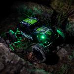Beim Crawlen im Dunkeln beleuchten vorinstallierte LED-Rock-Lights jedes Rad. Die hellen LEDs sind in robusten einstellbaren Gehäusen am Käfig befestigt. Verschiedene Farben sorgen für eine eindeutige Fahrzeugerkennung und Crawlen mit Stil.