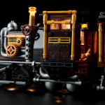 Erhellen Sie die Nacht dieses einzigartigen Steampunk-Erzzug-Bausatzes mit unserem originalen Beleuchtungssystem. Genießen Sie die authentischen Details mit den perfekt beleuchteten Frontscheinwerfern, der Passagierkabine und dem Führerstand, den verschiedenen Erzen, der Unterseite der Räder, den warmen Öllampen usw.