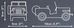 Das im Maßstab 1:35 entwickelte lizenzierte Modell aus Klemmbausteinen des JEEP WILLYS CJ-2A enthält speziell gestaltete Elemente mit dem charakteristischen Willys-Grill und Fensterrahmen. Das Modell verfügt über rotierende Räder und ist so dimensioniert, dass es für COBI-Minifiguren geeignet ist!