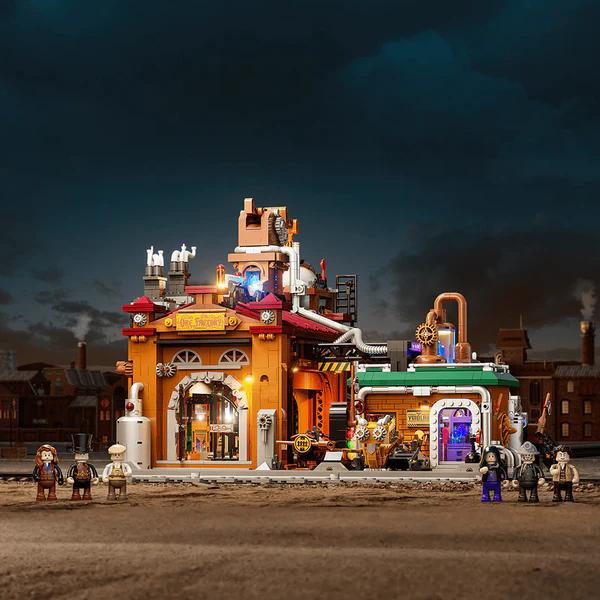 Maintains the steampunk retro lighting style and provides dynamic effects that respond to assembly. Red, green and amber signal lights are used to recreate the realism of factory operation. #break