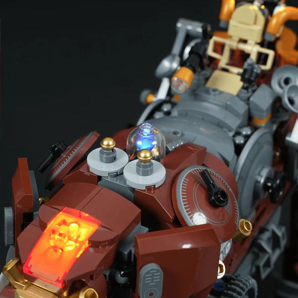 This set includes 1 minifigure (the Keeper of the Elephant) carrying a walking stick and draped in a cloak, reminiscent of the story of a human and his mechanical companion wandering through the desert together.