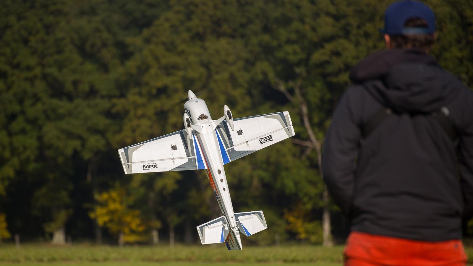 This makes the model incredibly strong and predestined for hard 3D and the XA flying style. As the Extra can be controlled extremely precisely and flies very neutrally (no mixers are required), all classic aerobatic maneuvers can also be flown precisely and effortlessly. The Extra engages precisely in snaps or rolls and oscillates extremely little in the Harrier. This makes it easy to learn new figures or to internalize the control sequences.