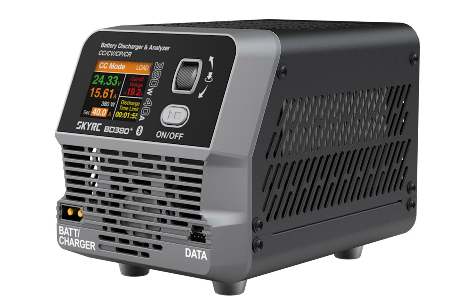 Powerful unloading. Precise analysis. The SkyRC BD380+ is a stand-alone battery discharger and analyzer for demanding applications. Up to 380W power, 40 A discharge current and 40V ensure enormous performance and precise handling for all battery types!