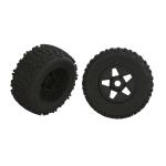 Tires: Multi-surface chunky tread pattern for awesome traction in all conditions - High-quality rubber for long-lasting durability - Pre-glued for trouble-free fit and servicingWheels: Classic-spoke design for stylish looks and increased strength - Tough nylon for durability on all surfaces - Black color for head-turning ARRMA styling - Steel reinforced 24mm Hex for strength during extreme driving action and easy servicing