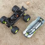 Die Karosserie des GORGON GROM 4X4 RTR Monster Trucks lässt sich schnell und unkompliziert auf das Rohrrahmenchassis setzen und mit einem einfachen Druck wieder abnehmen. Dank des cliplosen Befestigungssystems gehört das lästige Hantieren mit kleinen Clips der Vergangenheit an perfekt auch für junge Basher!