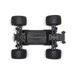 Unter der Haube steckt ein verstärktes Chassis mit einer hoch belastbaren Federung, die selbst die härtesten Einschläge wegsteckt und einfach weitermacht. Das tiefe Rohrrahmenchassis hält Schmutz und Dreck fern, damit du härter Bashen kannst, ohne dass etwas verschmutzt. Die Monster-Truck-Konfiguration und der erhöhte Schwerpunkt ermöglichen es ihm, jedes Hindernis zu überwinden. Munster-Truck Spaß – drinnen oder draußen.