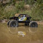 Das verkleinerte Capra-Rohrrahmenchassis mit behelmten Fahrer- und Beifahrerfiguren, LED-Scheinwerfern, Rock Lights und Lightbar verleiht dem Boliden ein realistisches Trailbuggy-Aussehen. Wähle deine Variante aus zwei neuen Farbstellungen. Eine hat einen grauen Käfig und blaue Karosserieteile mit lizenzierter King Shocks-Beklebung. Die andere hat einen schwarzen Käfig und gelbe Karosserieteile mit lizenzierter Mickey Thompson Tire-Beklebung.