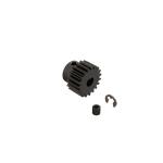 Strong and durable steel for long-lasting performance in extreme RC conditions - Precision manufactured wide tooth profile for smooth operation - 'D' shaped hole to match motor shaft profile so drive and brakes are not lost if the set-screw backs out - Suits 5mm motor shaft diameter - Precision manufactured threaded set-screw hole - E-clip supplied for motor shaft pinion retentionIncludes