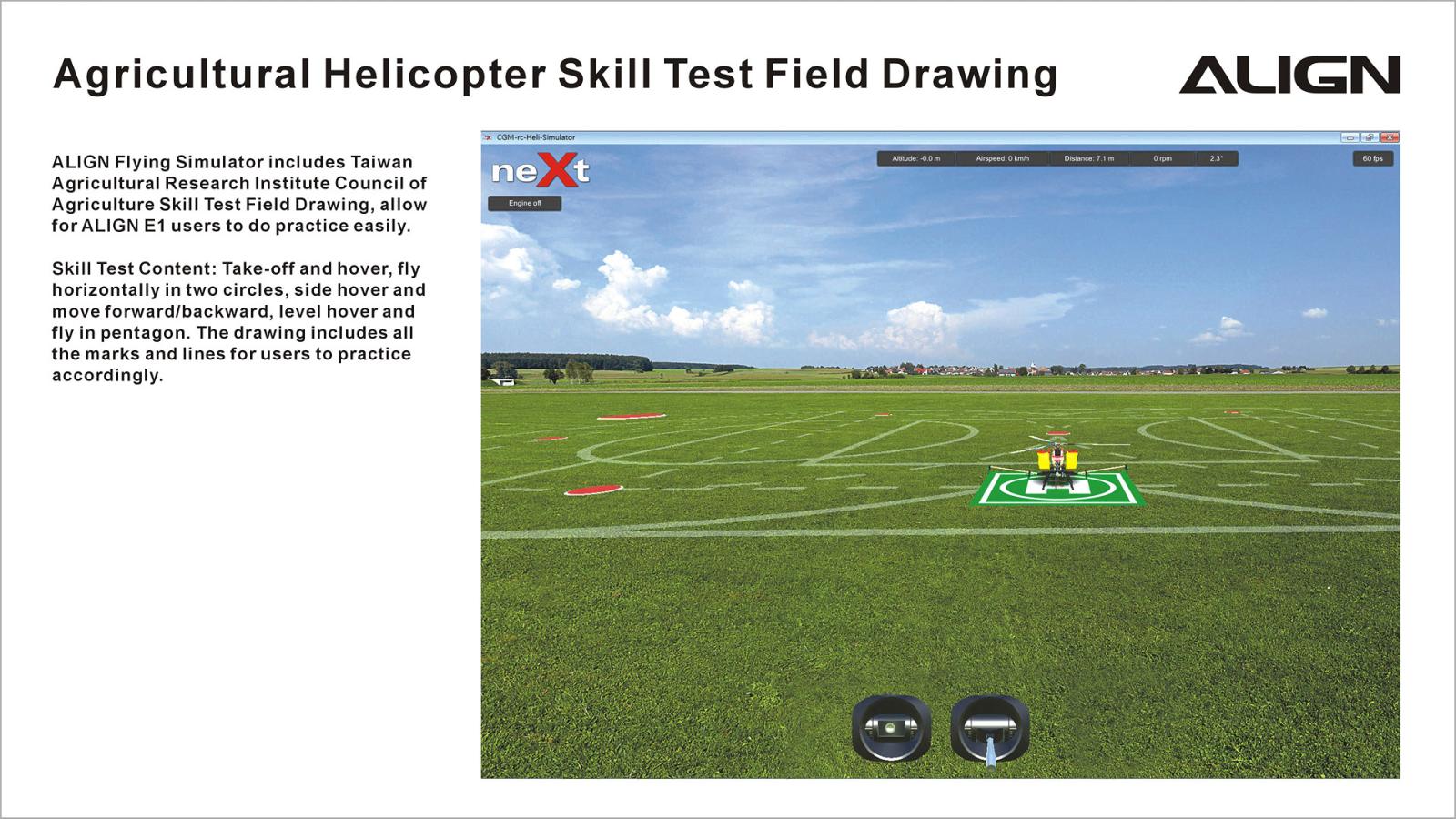 Der ALIGN Flugsimulator enthält die Skill Test Field Drawing des Taiwan Agricultural Research Institute, mit der ALIGN E1 Benutzer leicht üben können.