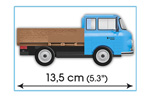 Aus einer Reihe von COBI-Bausteinen mit bis zu 156 Elementen bauen Sie ein Auto der Marke Barkas mit offenem Ladekoffer. Das Modell wurde originalgetreu im Maßstab 1:35 reproduziert. Das Set wurde komplett mit Aufklebern verzichtet. Die Blöcke wurden mit hochwertigen Drucken bedeckt, die sich auch bei intensivem Spiel nicht abnutzen. Das Set hat ein durchdachtes kompaktes Design und bewegliche Räder.