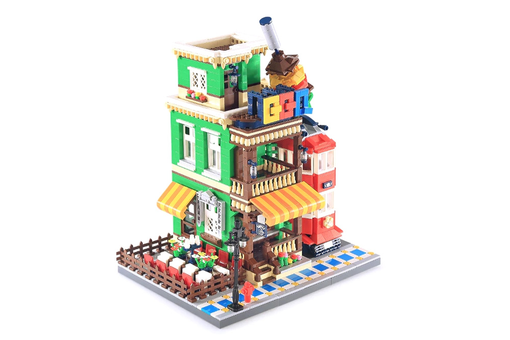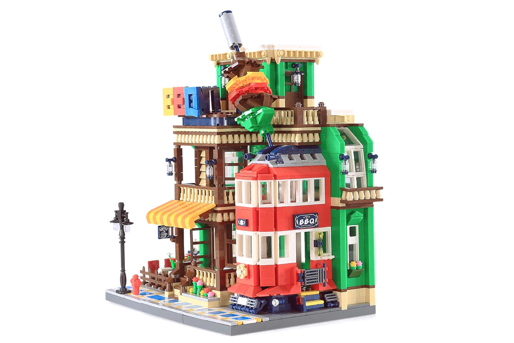 Dieses BBQ Restaurant wurde farbenfroh und detailreich gestaltet und ist ein echter Blickfang. Bau- und Spielspaß für mehrere Stunden ist garantiert. Das Haus passt hervorragend in die ein oder andere Straßenscene.