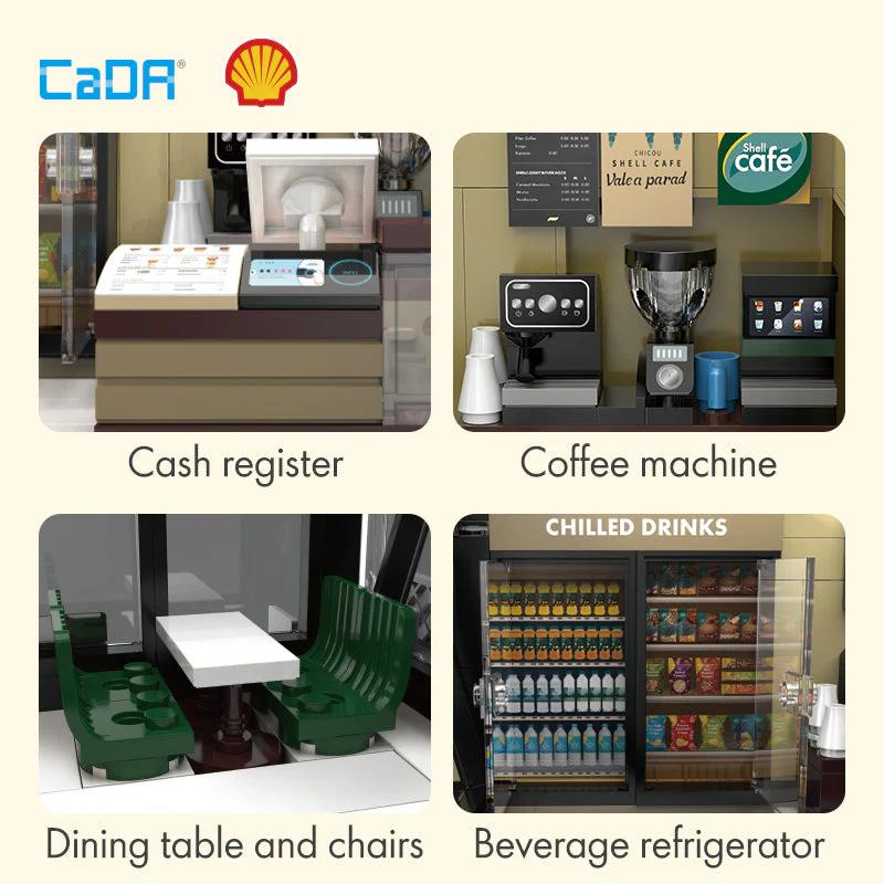 Das CaDA Shell Café C66033W ist ein detailreich gestaltetes Klemmbaustein-Set im authentischen Shell-Design. Dank offizieller Shell Lizenz überzeugt das Modell mit markanter Markenoptik und zahlreichen liebevollen Details.