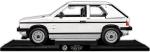 Dies ist eine spezielle Sammlerversion des Volkswagen Golf GTI-Modells im Maßstab 1:12 mit exklusiver weißer Karosserie. Diese Ausgabe enthält außerdem einen Präsentationsständer und eine schwarze Platte mit dem Namen des Modells.