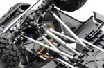 Ein realistisch gestalteter 5 mm CNC-gefräster Aluminiumrahmen mit einem hochbelastbaren Aluminium-4-Lenker-Aufhängungssystem. Ölgefüllte Stoßdämpfer mit 5mm-Kolbenstangen sorgen für ein seidenweiches und realistisches Ansprechverhalten. Das Fahrzeug kommt standardmäßig mit Federn in Stärke MEDIUM (SOFT & HARD sind optional erhältlich). Bei Bedarf kann auch ein Stabi-Set verbaut werden welches im Lieferumfang enthalten ist.