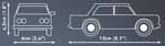 • ein Block mit einem gedruckten Modell und dem Namen des Autos,