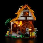 In diesem Set gibt es 7 beleuchtete Positionen. 1 Licht befindet sich vor der Tür und 1 Licht außerhalb der Tür, so dass der Wasserradantrieb der Mühle mit dem Licht kombiniert wird. Der dynamische Effekt des sich drehenden Wasserrads wird durch die intermittierende Beleuchtung spürbar. Darüber hinaus sind 2 eisblaue Lichtpunkte auf dem Wasser neben der Mühle angebracht, die eine ruhige Atmosphäre der mittelalterlichen Landschaft bei Nacht schaffen.