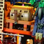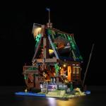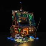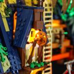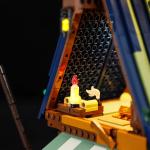 FO hat für dieses Set 13 Lichterketten nach Maß angefertigt, die insgesamt 21 Lichtquellen beleuchten. Bei Einbruch der Dunkelheit erhellen die Lichter am Mast das Dach, die warmgelben Öllampen, die am Dachfirst hängen, und die Flammen des Grills brennen. Im Pub wird es allmählich lebendiger, und das warme Licht fällt aus den Fenstern und spiegelt sich auf der Meeresoberfläche.