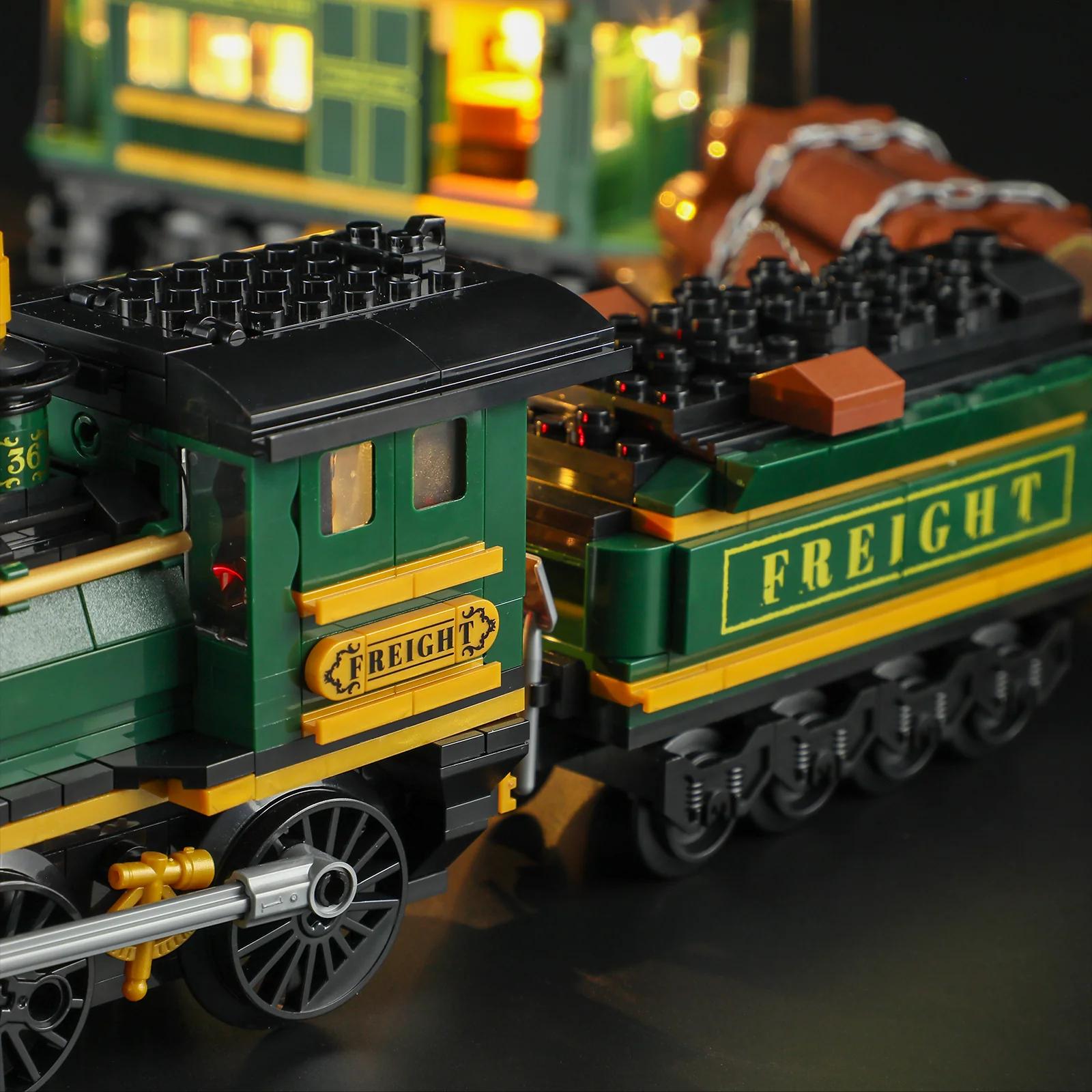 Das Design des Western Freight Train 1524PCS basiert auf historischen Fakten, insbesondere auf dem klassischen 4-4-0-Dampfzug, der im westlichen Güterverkehr eingesetzt wurde. Der Zug verfügt über eine realistische Darstellung der Kohle- und Holztransportwagen und enthält sogar einen luxuriösen Privatwagen, der realen Vorbildern nachempfunden ist.