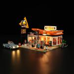 Dieser Baukasten zeigt eine von den 1960er Jahren inspirierte Tankstelle mit ikonischen architektonischen Details. Das Modell fängt perfekt die Nostalgie klassischer amerikanischer Highway-Stationen ein.