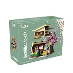 Der zweite Stock dient als Ruhebereich mit Balkon und Fischteich. Kirschblüten, einziehbare Markise und integrierbare Beleuchtung schaffen eine gemütliche Atmosphäre. Das Modell kann mit anderen Gebäuden kombiniert werden, um eine individuelle Geschäftsstraße zu gestalten.