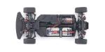 Für den reinen Fahrspaß ist die Kombination aus einer wunderschön nachgebildeten Karosserie und dem Chassis der FAZER-Serie unschlagbar. Kyosho hat sein Standard-Tourenwagen-Chassis genommen und es einer kompletten Modellüberarbeitung unterzogen, die die Leistung auf ein neues Niveau gebracht hat. Ein vereinfachtes Design mit weniger Teilen hat die Wartungseffizienz verbessert und das Gewicht reduziert, während die Festigkeit und Steifigkeit des Kerns durch neue Materialien, Verrippungen und Versteifungen an Front und Heck erhöht wurde. Darüber hinaus sorgt das symmetrische Chassisdesign für eine hervorragende Balance zwischen Vorder- und Hinterachse und eine reaktionsschnelle Kontrolle, unabhängig von der Antriebsquelle. Ausgestattet mit einer Rutschkupplung, Differentialen vorne und hinten, Öldruckstoßdämpfern und Kugellagern, ermöglicht die hohe Haltbarkeit und Stoßfestigkeit dem Fahrer, das volle Potenzial des Fahrwerks auszuschöpfen. Bremsscheiben-Radnaben mit zwei verschiedenen Einpresstiefen (0mm, +5mm) sorgen für Kompatibilität mit 190mm und 200mm breiten Karosserievarianten und ermöglichen es, den Radstand auf 274mm einzustellen, indem einige Teile (separat erhältlich) ausgetauscht werden, um die Kompatibilität mit anderen 1/10 Karosserievarianten zu gewährleisten, zusätzlich zur enthaltenen Karosserie. Das Readyset-Paket wird komplett montiert geliefert und enthält alles außer Ladegerät und Akku für das Chassis und Batterien für den Sender.