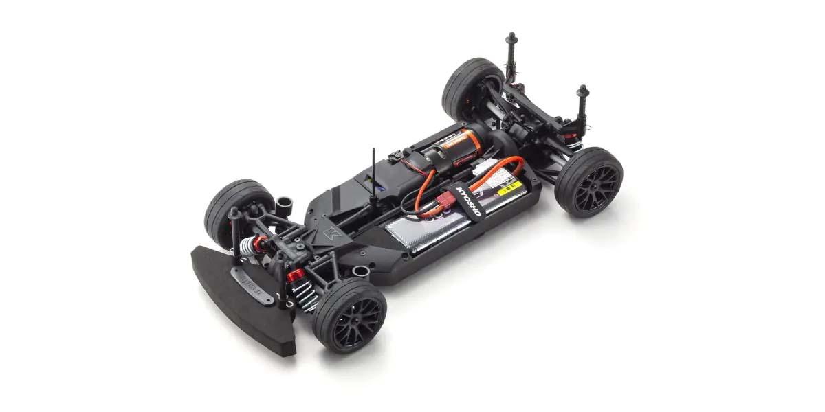 Für den reinen Fahrspaß ist die Kombination einer wunderschön nachgebildeten Karosserie mit dem Chassis der FAZER-Serie nicht zu übertreffen. Kyosho hat sein Standard-Tourenwagen-Chassis genommen und ihm eine komplette Modellüberarbeitung gegeben, die die Leistung auf ein neues Niveau gebracht hat. Ein vereinfachtes Design mit weniger Teilen hat die Wartungseffizienz verbessert und das Gewicht reduziert, während die Festigkeit und Steifigkeit des Kerns durch neue Materialien, Verrippungen und Versteifungen an Front und Heck erhöht wurde. Darüber hinaus sorgt das symmetrische Chassisdesign für eine hervorragende Balance zwischen Vorder- und Hinterachse und eine reaktionsschnelle Kontrolle, unabhängig von der Antriebsquelle. Mit Zahnraddifferentialen vorne und hinten, Öldruckstoßdämpfern und voll kugelgelagerten Lagern können die Fahrer dank der hohen Haltbarkeit und Stoßfestigkeit das volle Potenzial des Fahrwerks ausschöpfen. Bremsscheiben-Radnaben mit zwei verschiedenen Einpresstiefen (0mm, +5mm) sorgen für Kompatibilität mit 190mm und 200mm breiten Karosserien und ermöglichen die Anpassung des Radstandes auf 260mm durch den Austausch einiger Teile (separat erhältlich) für die Kompatibilität mit anderen Karosserien im Maßstab 1:10, zusätzlich zur enthaltenen Karosserie. Das Readyset-Paket wird komplett montiert geliefert und enthält alles außer Ladegerät und Akku für das Chassis und die Batterien für den Sender.
