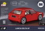 Der italienische Lancia ist Teil unserer COBI-Automobilfamilie. Der Lancia Delta HF von 1987 ist eine Ikone der Auto-Rallyes. Das Modell dominierte die Rallye-Weltmeisterschaft (WRC) und gewann 46 Siege und sechs Konstrukteursmeistertitel in Folge (1987–1992). Das Auto zeichnet sich durch ein markantes, aerodynamisches Design mit einem aggressiven Lufteinlass vorne und einem markanten Heck aus. Der Delta war mit einem turbogeladenen Benzinmotor ausgestattet. Die Leistung lag je nach Ausführung zwischen 130 und 165 PS.
