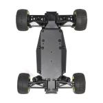 Inspiriert von einem meisterschaftsgekrönten TLR Racing Buggy, verfügt der Micro-T Stadium Truck über ein hochwertiges, schwarz eloxiertes Aluminium-Chassis. Vorderachse mit Caster-Kick und seitlichen Verstärkungen sorgt für eine stabile und robuste Basis, die Sprünge problemlos abfedert.