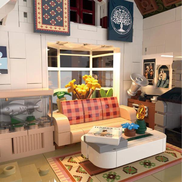 Das Set zeichnet sich durch warme Farbtöne aus, die einen Kontrast zur eisigen Umgebung bilden und die gemütliche Atmosphäre des Gebäudes hervorheben.