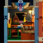 Das Produkt verfügt über zehn Lichtpunkte, die überwiegend warmweiß sind und die helle Innenbeleuchtung eines Spielzeugladens nachbilden. Auf der linken Seite befinden sich gelbe Fenster, die die warme Atmosphäre noch verstärken.