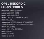 Der Sportwagen Opel Rekord C Coupé wurde unter der Originallizenz der Marke Opel herausgebracht. Das Set wurde mit 2.415 Elementen gestaltet. Das Modell zeichnet sich durch die Verwendung einer großen Anzahl von ausschließlich hochwertigen Drucken aus! Auf Aufkleber haben wir komplett verzichtet. Neue Elemente wurden speziell für die Bedürfnisse solch großer Sets entwickelt und bieten zusätzliche Funktionalitäten: ein bewegliches Lenkrad, mit dem man die Räder drehen kann, und Scharniere zum Öffnen von Türen, Karosserie- und Verkleidungselementen. Unter der kippbaren Motorhaube befindet sich ein gemauerter Motor. Zahlreiche Details wie Griffe, Leuchten und Uhren bilden ein stimmiges Ganzes mit der perfekt wiedergegebenen charakteristischen Form dieses Fahrzeugs.