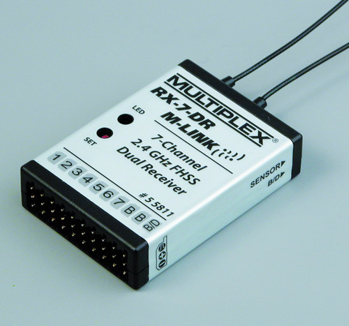 Ein hochwertiger, in modernster SMD-Technik aufgebauter 7-Kanal-Empfänger in MULTIPLEX 2,4 GHz M-LINK-Technologie für alle Arten von Modellen. Durch die kompakten Abmessungen