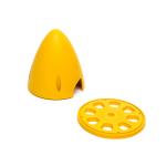 Lackierter Kunststoffspinner mit Rückwand und Schrauben.