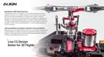 Der neue ALIGN T-REX 650X besitzt ein einzigartiges Rahmendesign. Er verfügt über ein getrennten Hauptrahmen, einen schmalen oberen Rahmen und einen breiteren unteren Rahmen. Ideal um die Struktur zu stärken und bequem zu reparieren. Als Flugakku kommt ein 12S LiPo mit 3300-6000mAh zum Einsatz. Außerdem gibt es viele nette Funktionen, wie einen neuen Schnellverschluss für den Akku, deutlich sichtbare Farben am vertikalen Leitwerk, den Hauptrotorblättern und der Kabinenhaube, welche zudem mit einem neuen Magnetverschluss ausgestattet wurde. Die Flugleistung ist eine Kombination aus hoher Stabilität des 700er und der hohernAgilität eines 600ers.
