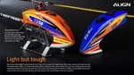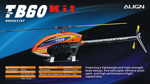 Das TB60 Kit verkörpert Aligns neueste Entwicklungsphilosophie aus dem Jahr 2023: mechanische Vereinfachung bei gleichzeitig explosiver Leistung – ein echter Nachfolger der 550er/600er-Klasse, ideal für 3D-, Kunst- und Sportpiloten. Durch das effiziente Belt‑Drive‑Getriebesystem, die kompakt schlanke Haube und die leichte Composite-Konstruktion mit Embedding‑Technologie setzt er neue Maßstäbe in Handling, Präzision und Fluggefühl.