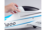 Für die Montage ist kein Kleber erforderlich und die Montage der V1200 dauert geht schneller, als es dauert den Akku aufzuladen. Für die Montage des einteiligen Flügels und des Leitwerks werden nur sechs Schrauben benötigt und alles kann für den einfachen Transport und Lagerung leicht demontiert werden.